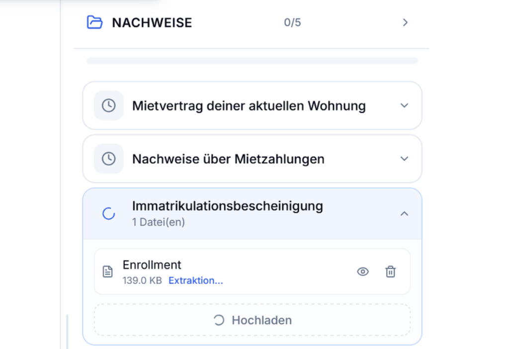 Dokumente hochladen, Daten werden automatisch in die richtigen Felder übertragen. VLM-gestützte Extraktion spart manuelle Eingabe und reduziert Tippfehler um bis zu 80 %.