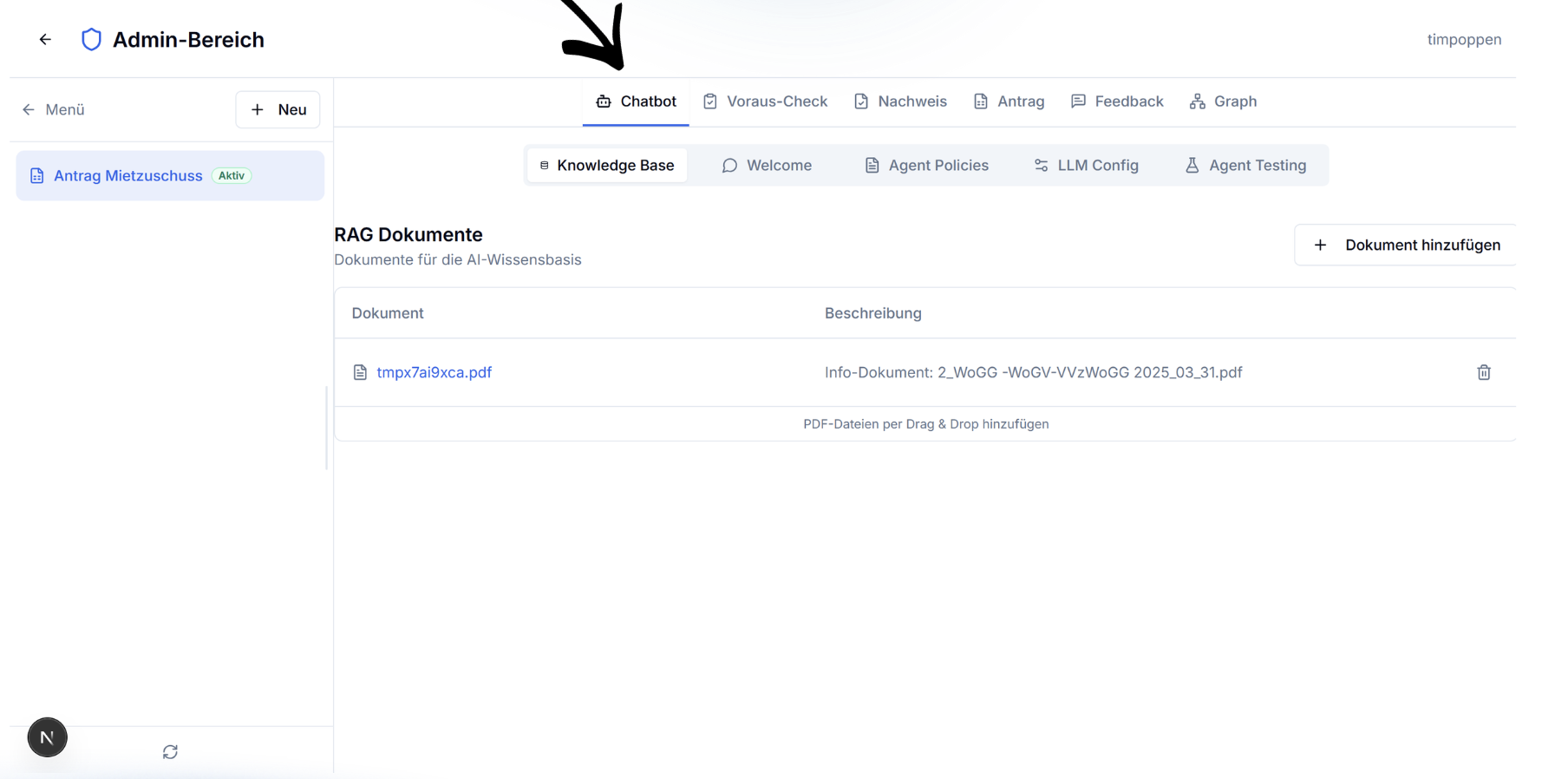 - Knowledge Base mit fachspezifischem Wissen befüllbar